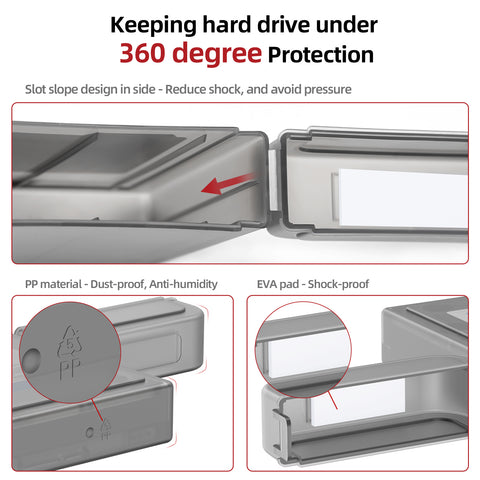 | More Convenient HDD Case: Slot slope design, the hard Drive put in the box more smoothly and makes it easier to manage and securely to protect your HDDs. |