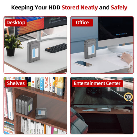 | Space Saving Design with Unlimited Stack: Compact size make more easily carry, and at the same time subtly reduce the space occupation and clutter of the desktop. Keeping Your HDD Stored Neatly and Safely. |